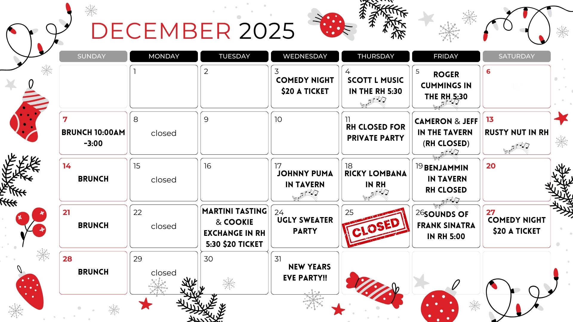 • 12pm-9pm Tuesday-Saturday~ 10am-3pm Sunday ~Closed Mondays